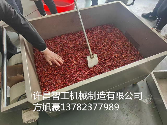 3月16日,客户带辣椒来厂试机电磁炒货机炒制